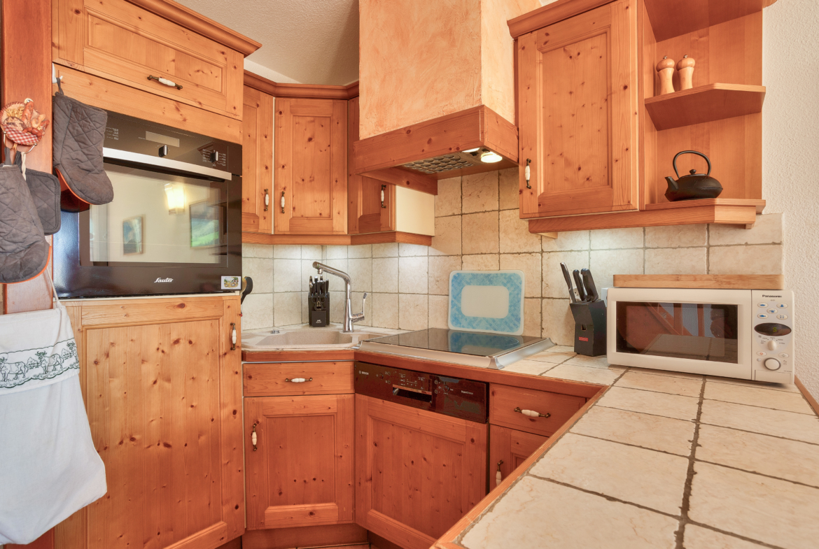 Equipements : Séjour avec coin cuisine équipé (four chaleur tournante, micro-ondes, réfrigérateur, congélateur, lave-vaisselle, plaques induction, hotte aspirante) et coin salon, canapé avec TV satellite et lecteur Blu-Ray. Connexion wifi gratuite. TV + lecteur Blu-Ray dans la chambre double.