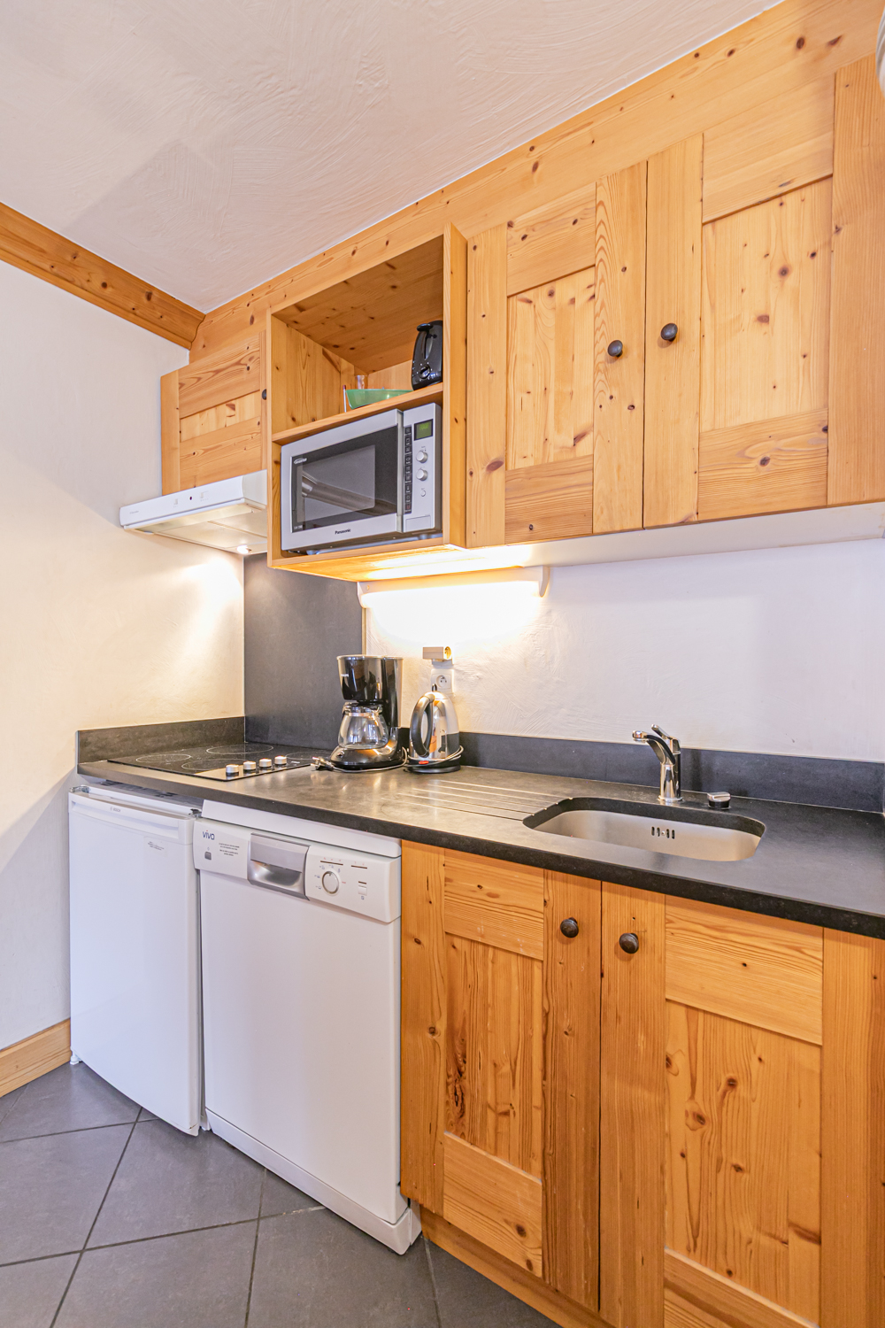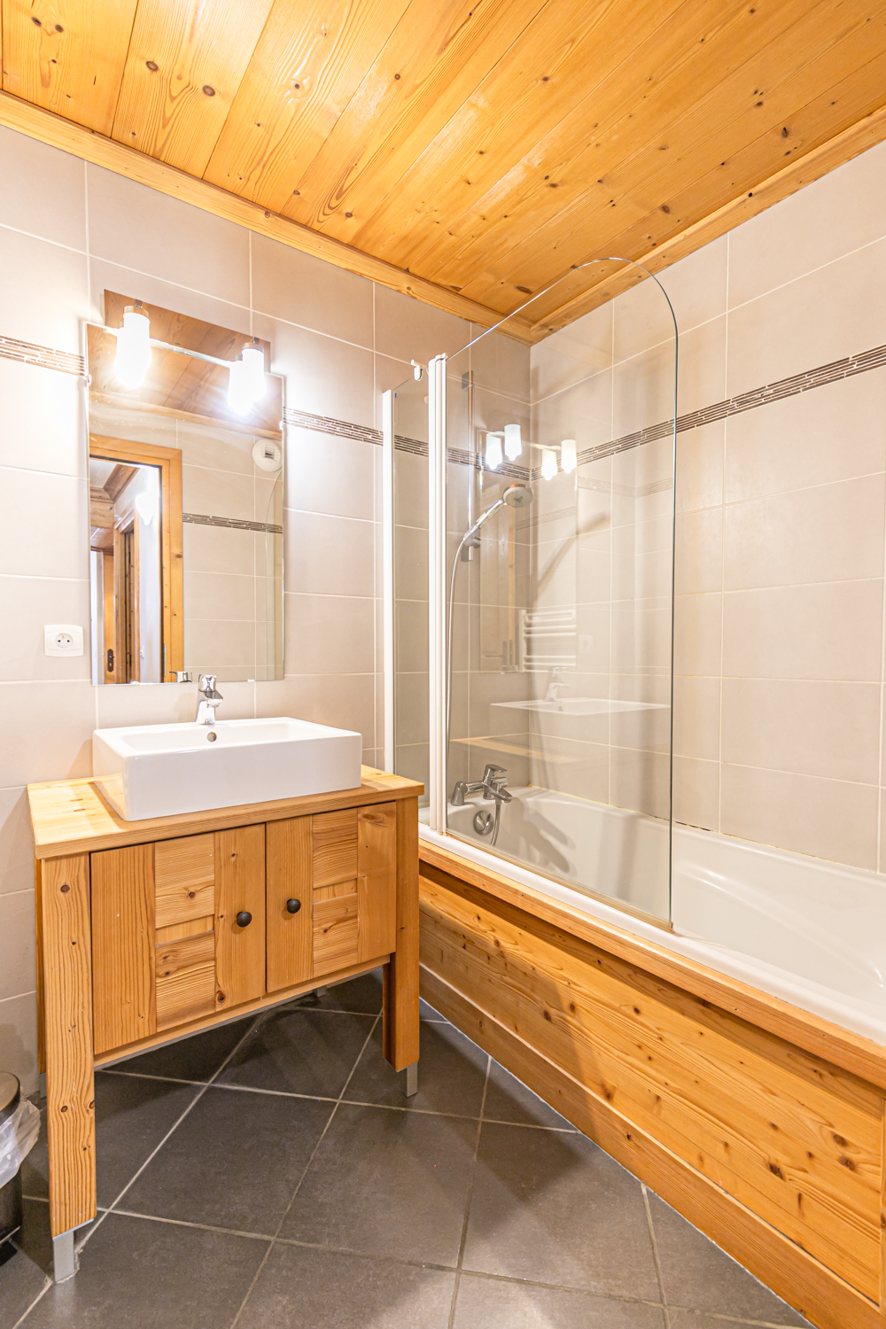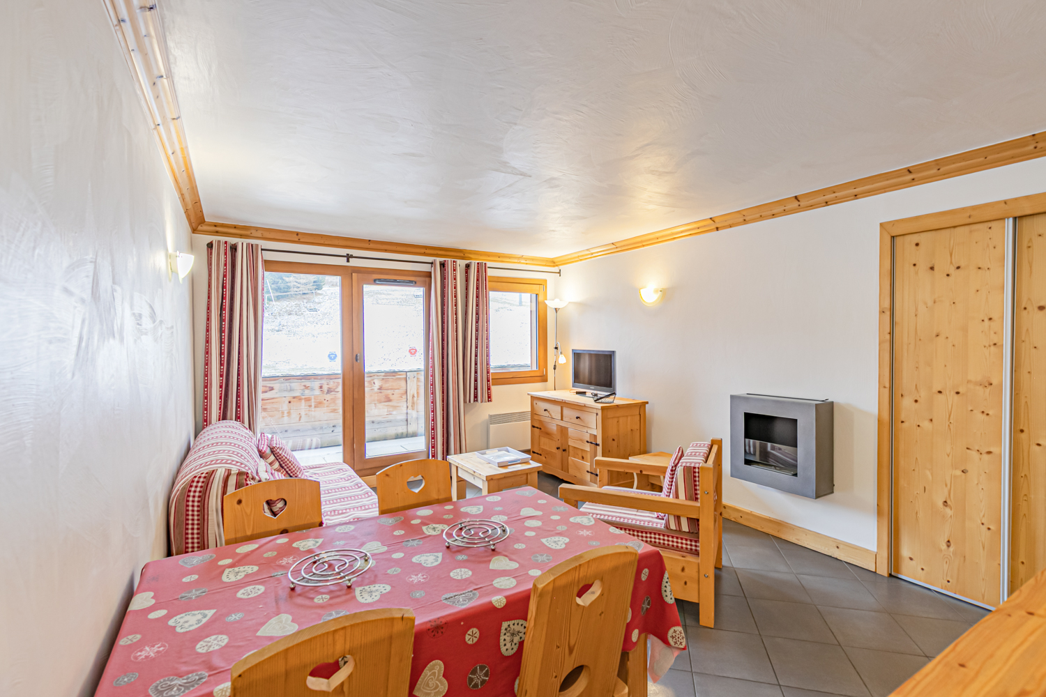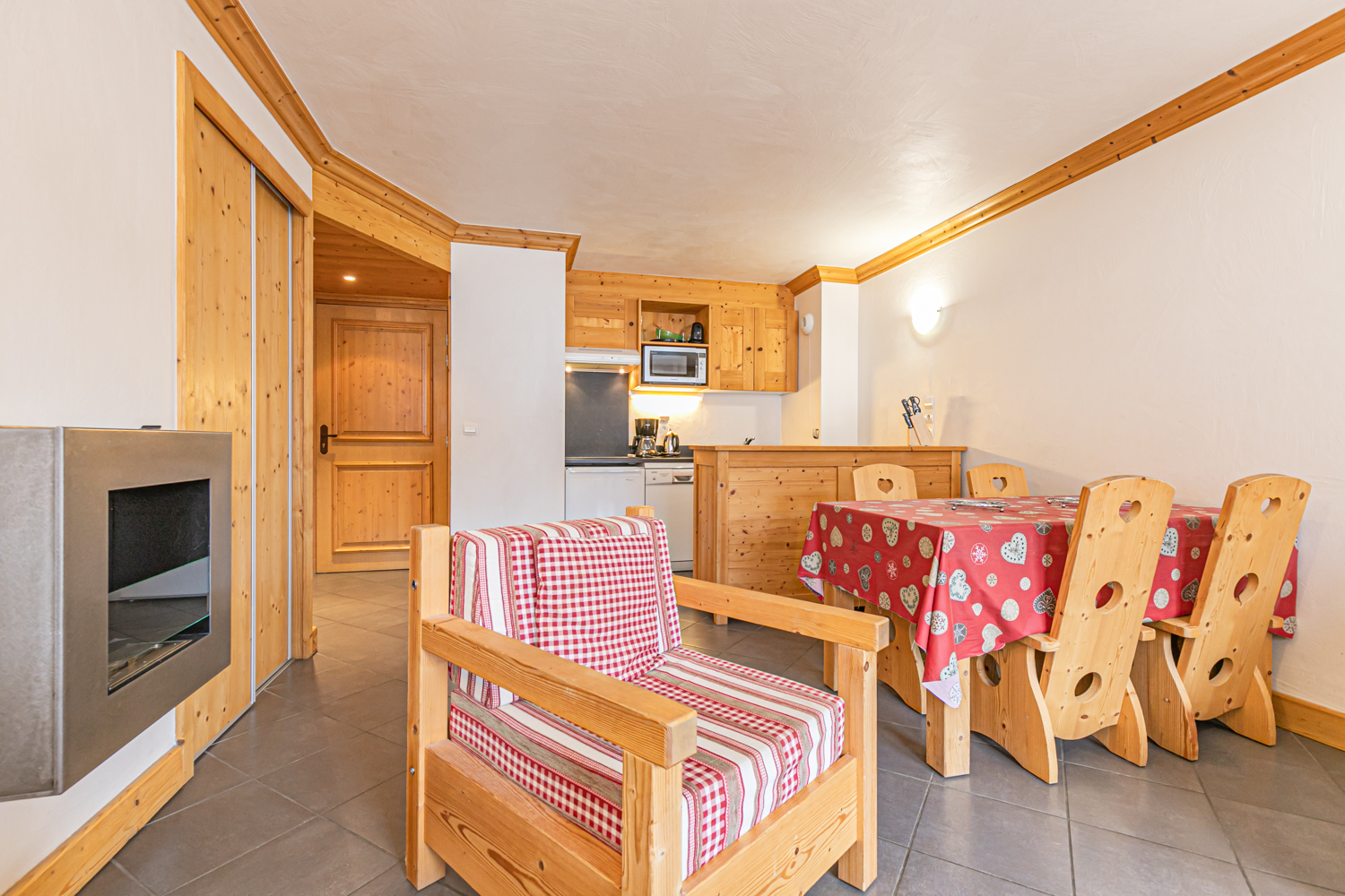 Equipements : Coin cuisine équipé (plaques vitrocéramiques, four combiné micro-ondes, lave-vaisselle, réfrigérateur). Coin salon avec TV écran plat et cheminée à l’éthanol. Connexion WIFI.