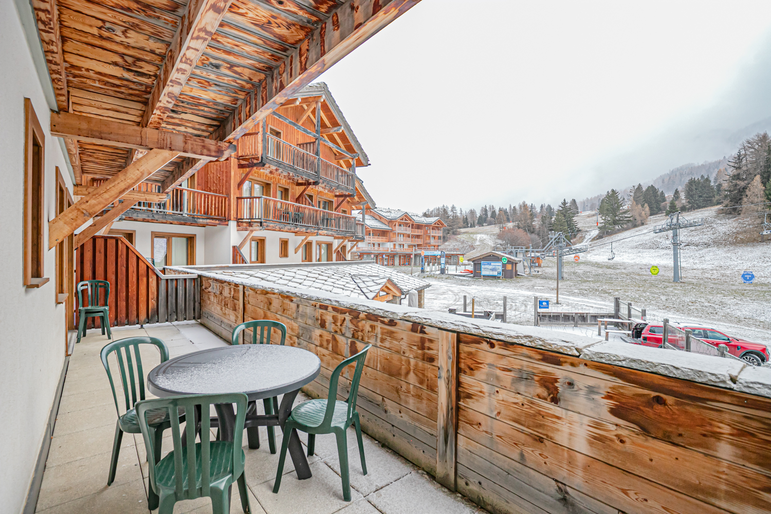 Situation : 1er étage entrée B. Balcon-terrasse orienté sud-est, vue sur pistes.