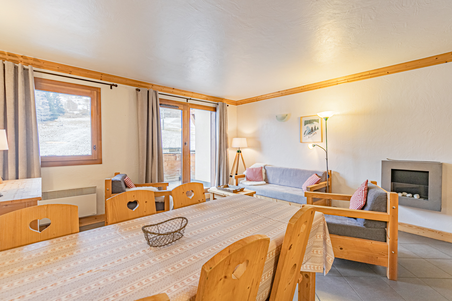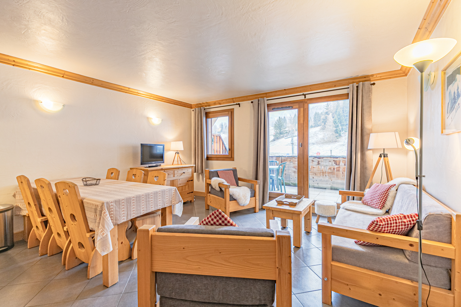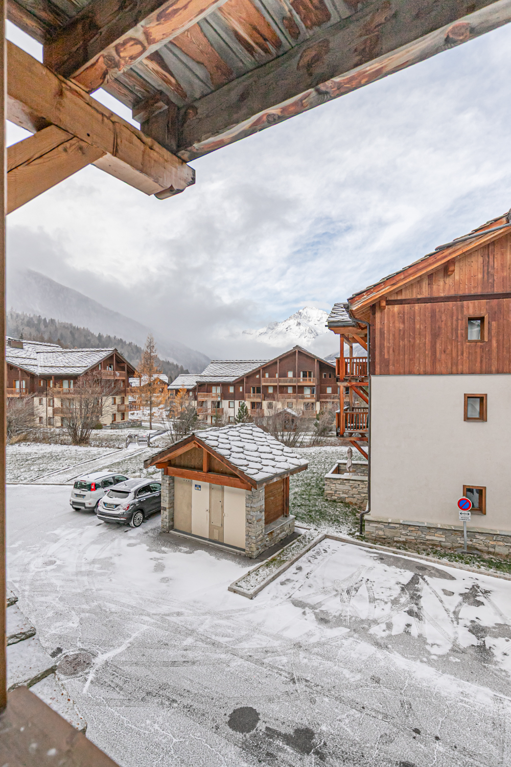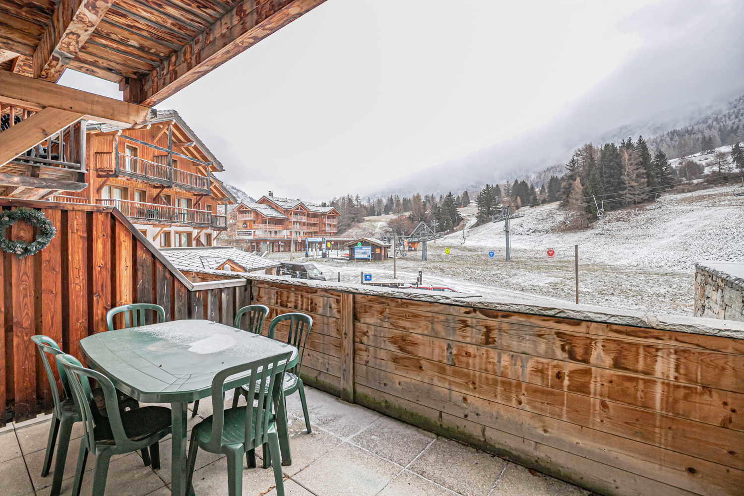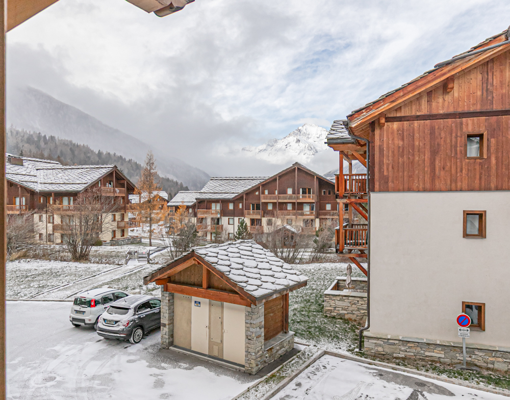 Situation : 1er étage entrée C. Balcon orienté sud-est, vue sur pistes.