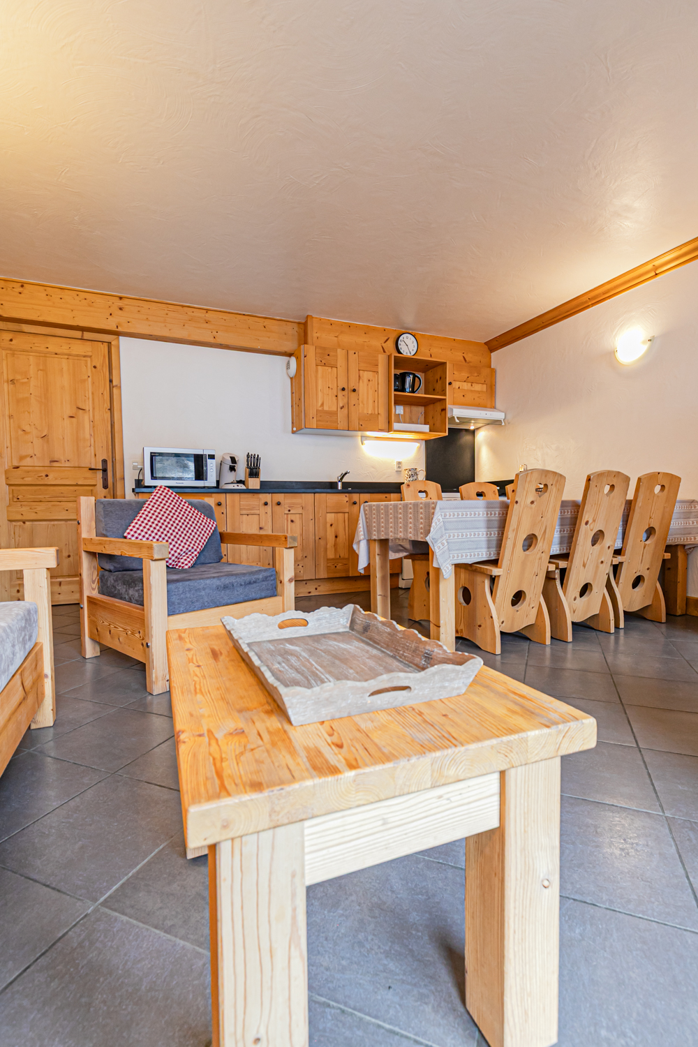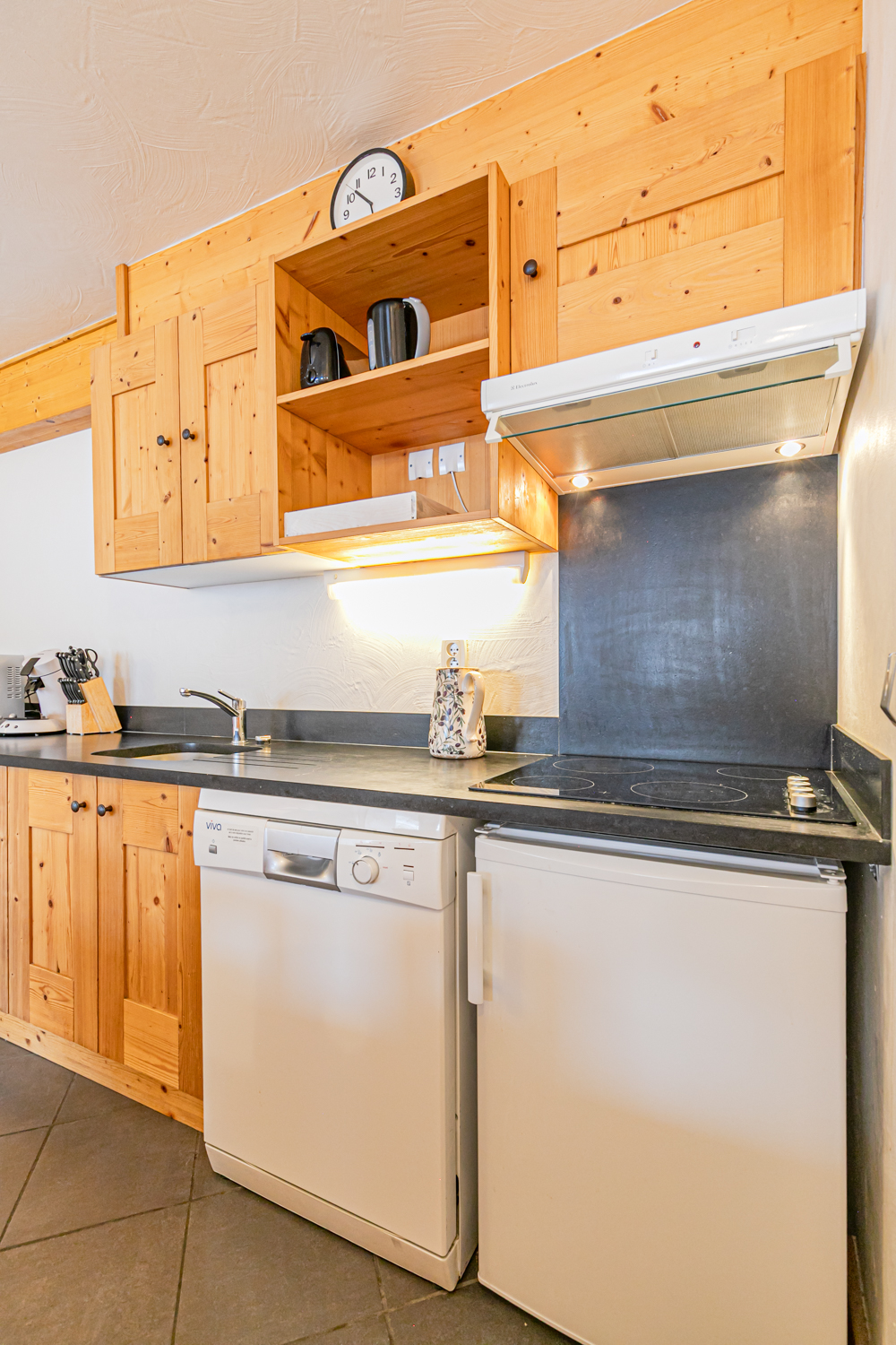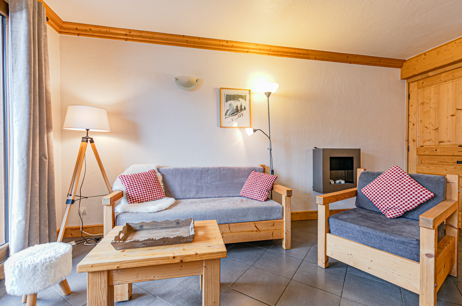 Equipements : Coin cuisine équipé (plaques vitrocéramiques, four combiné micro-ondes, lave-vaisselle, réfrigérateur). Coin salon avec canapé, TV écran plat et cheminée à l’éthanol. Connexion WIFI.