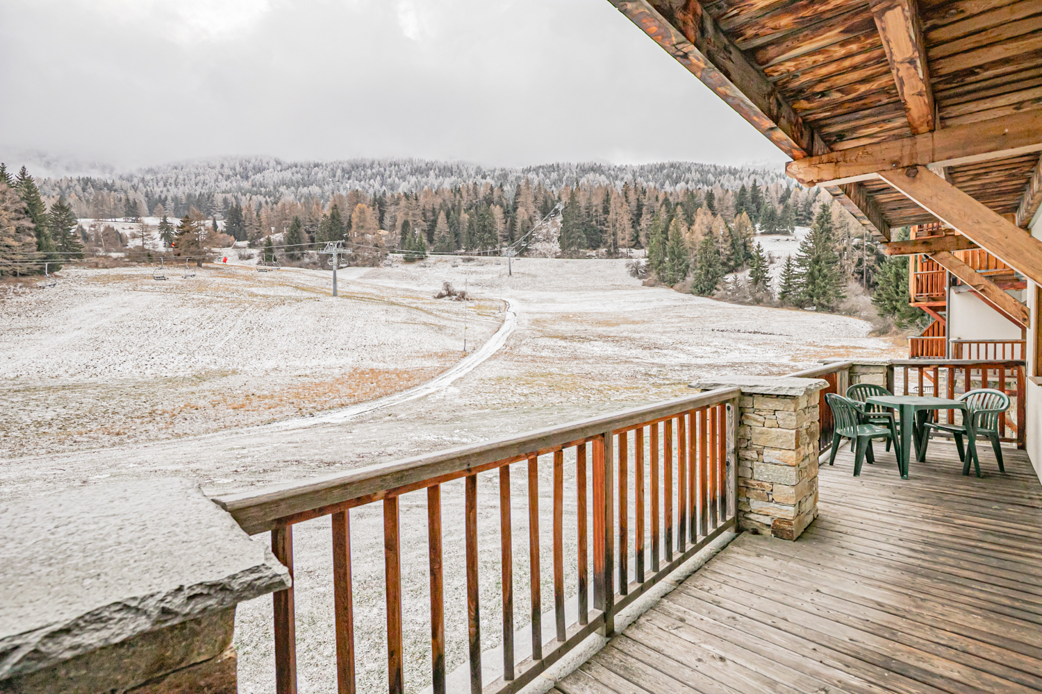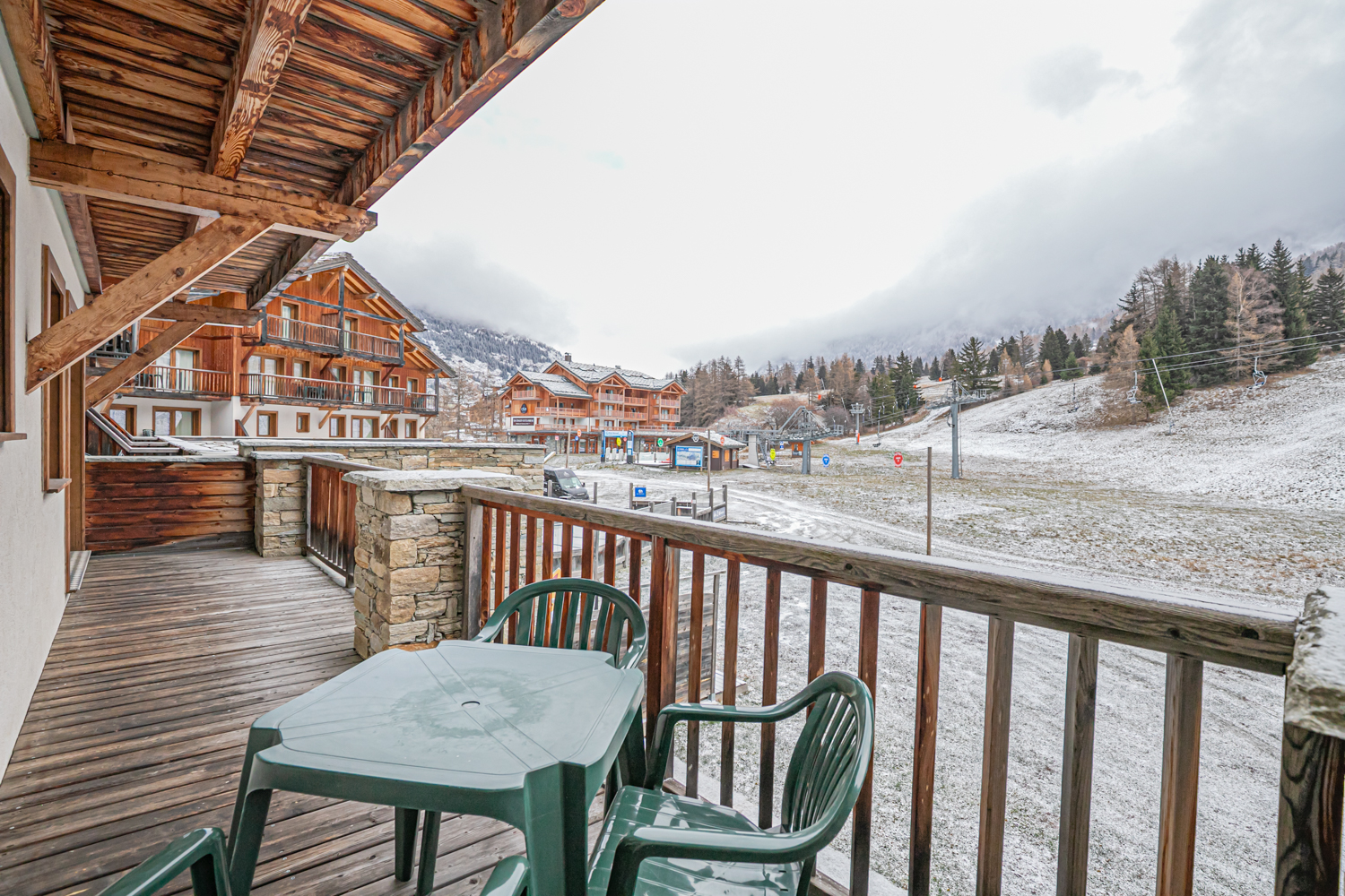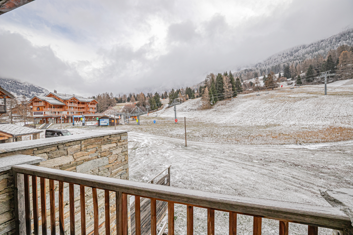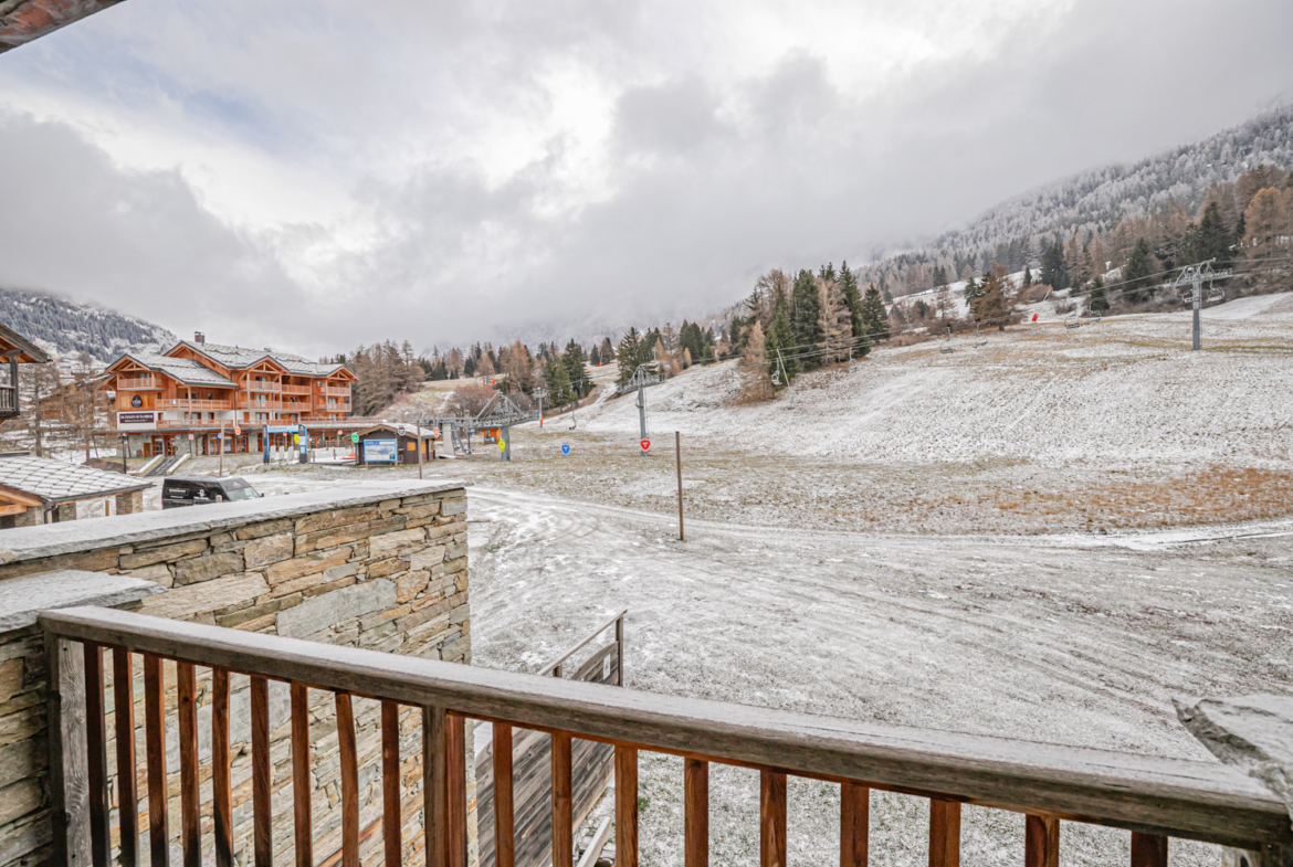 Situation : 1er étage étage entrée C. Balcon orienté sud-est, vue sur pistes.